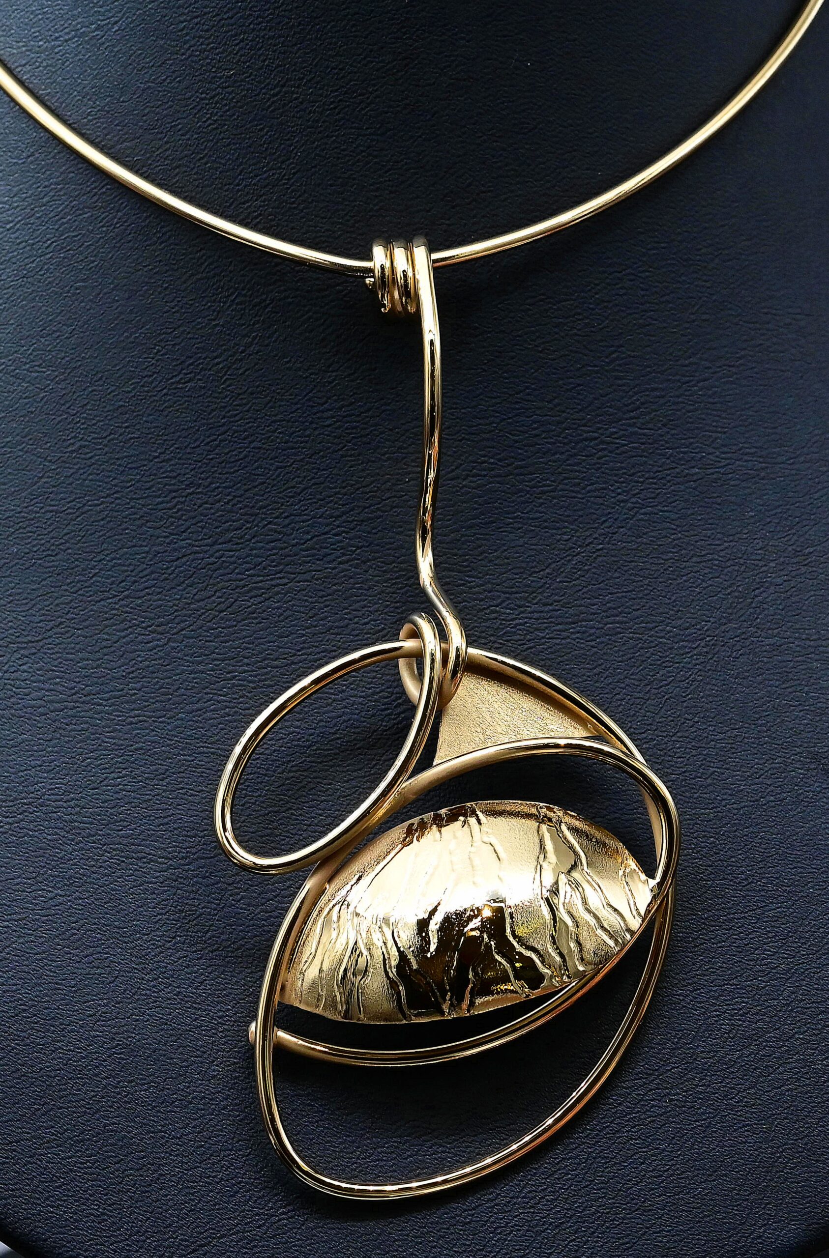 Elevate your style with this Abstract Brass Pendant plated in 18ct gold, handcrafted by Simon. Designed with a modern artistic touch, this statement piece combines bold abstract form with luxurious gold plating.